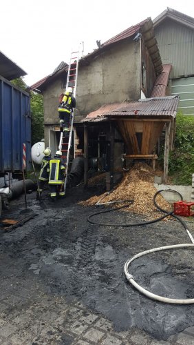 | Einsatzbeschreibung | Brand einer Hackschnitzelanlage. Beim Eintreffen der FFD waren die ersten Löschmaßnahmen bereits durch die FF Westendorf vorgenommen. Die FF Dösingen sicherte unter PA den Innenbereich über der Hackschnitzelanlage und kontrollierte diesen Bereich mittels Wärmebildkamera. Hier konnte jedoch schnell Entwarnung gegeben werden und der Einsatz konzentrierte sich auf den Aussenbereich, welcher durch die FF Westendorf bereits abgelöscht war. Im weiteren Verlauf arbeiteten die beiden Wehren zusammen und öffneten einen Teil des Vordaches um letzte Glutnester zu beseitigen. Aufgrund der zum Einsatzbeginn nicht abschätzbaren Gefahren, wurde die FF Oberostendort durch die Einsatzleitung nachalarmiert, diese mussten aber letztlich nicht mehr eingreifen. Abschließend zu erwähnen, der Einsatz wurde bereits mit den neu angeschafften Digitalfunkgeräten im DMO abgewickelt. |
